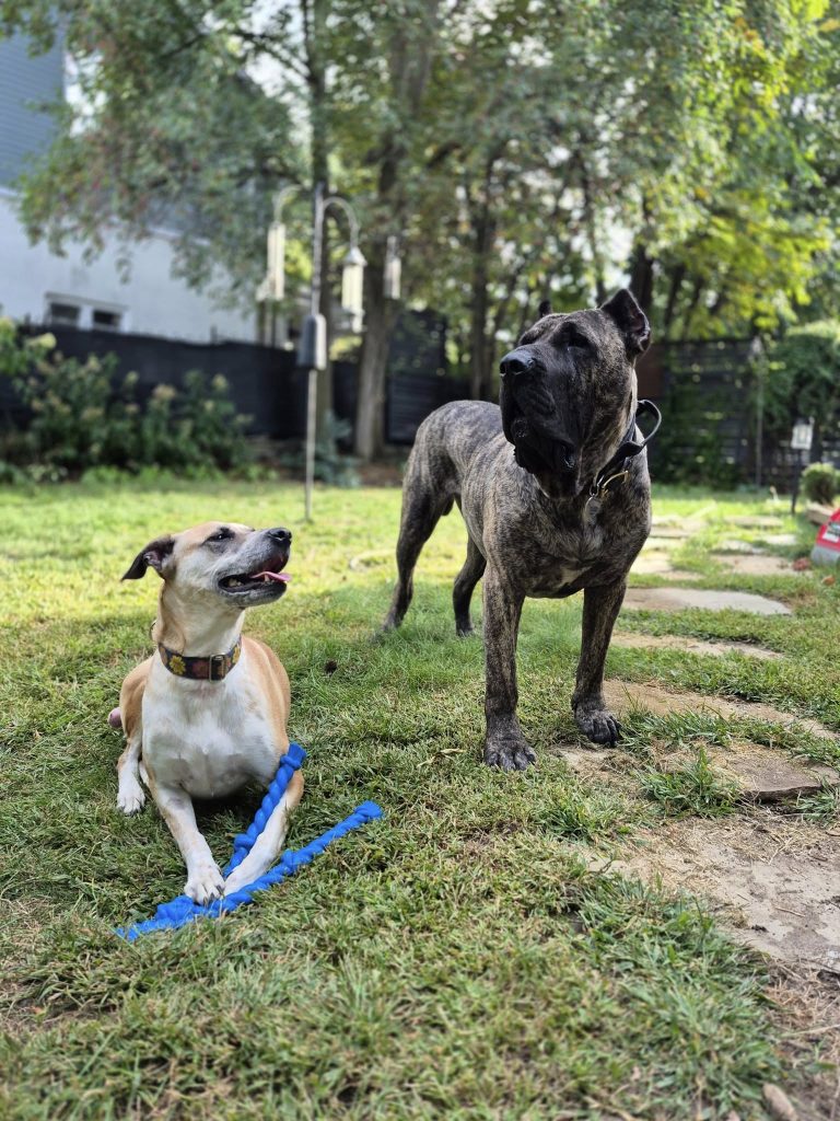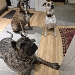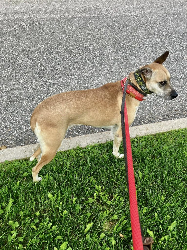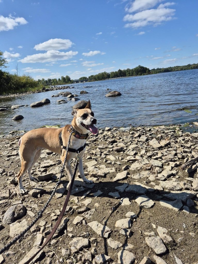 - Description/Info:: Very loving, playful and cuddly with people and dogs. She is a Velcro dog and very quiet. She is a bit shy and nervous at first but within a few days with patience she comes out of her shell and loves to be with you. She is a mover and shaker and loves to play with her toys inside and in the yard. She is great with dogs and super fast and agile when chasing them or being chased. She is a small slim dog and can change direction on a dime. My mastiff can never catch her. She was a bit nervous at first on her walks but has greatly increased her confidence on lead. She is still nervous of bikes and skateboards but has improved greatly in a short period of time. She is good passing people and is super inquisitive when passing other dogs on lead. She absolutely loves being pet, having her ears scratched and tummy rubbed. She is a great dog!