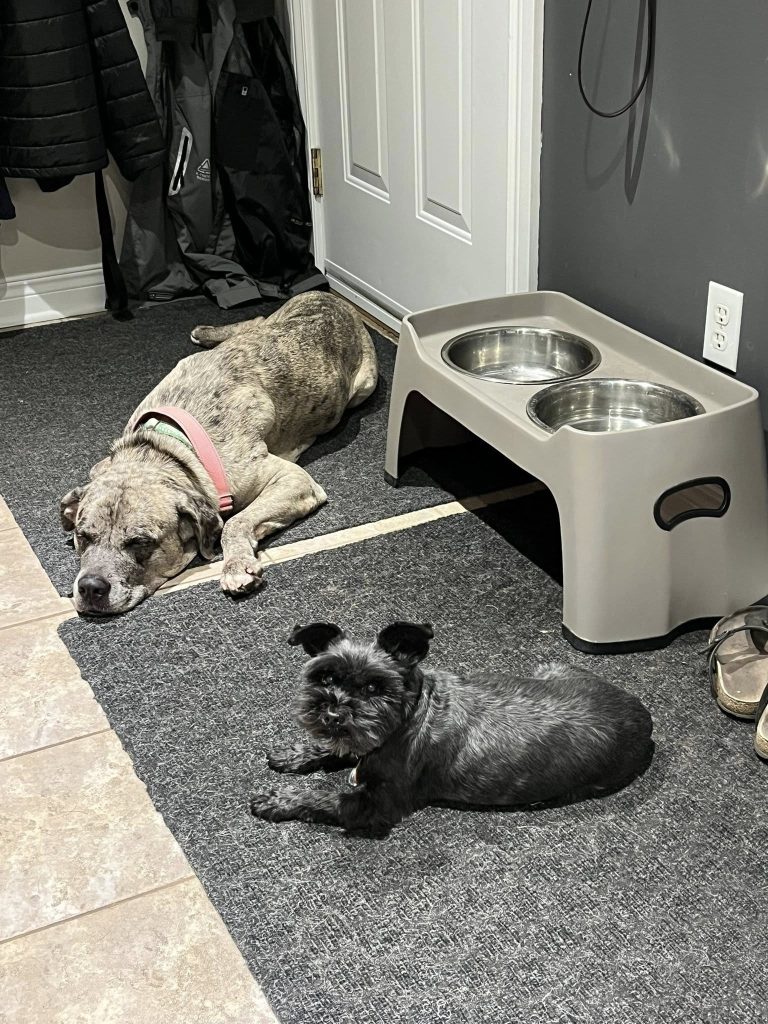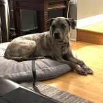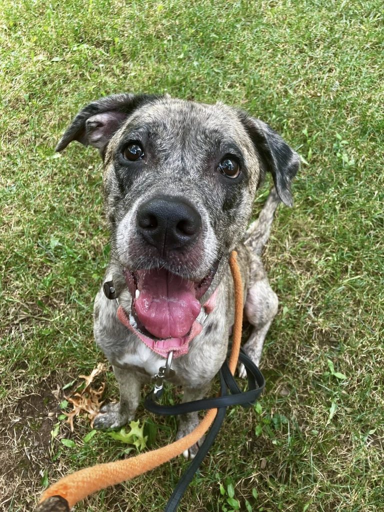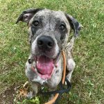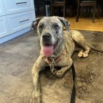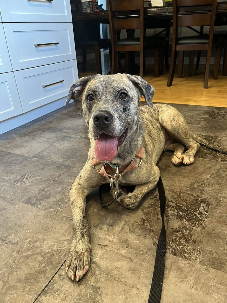 - Description/Info:: Koko is a very sweet girl who loves people, and has shown she prefers to be with her people wherever you are. She settled immediately with us when she came into our home. She is eager to please you, listening to your commands and food motivated so treats work very well for her training. She is very gentle when taking treats, loves to be petted and rubbed behind her ears. She loves to chew on her bones and toys, quiet when she drinks and hasn’t drooled!.Koko loves to go on walks and walks so very well on her leash, sitting nicely for you to put her halti on. She is happy to see you when you come home, is a really good girl and will be a very loyal member of your family to the lucky ones who adopt her.